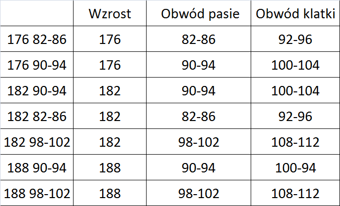 Tabela rozmiarów